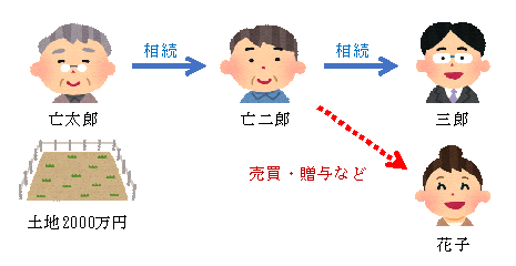 これは、複数回相続が発生していることを想定したものですが、二郎から相続により三郎に権利移転する場合に限られません。例えば、二郎が生前に第三者花子に売買や贈与等をしていた場合であっても、二郎への相続登記は非課税になります。
