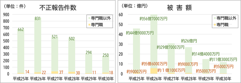 (注)各年の1月から12月までの間に、家庭裁判所が不正事例に対する一連の対応を終えたとして報告された数値であり、不正行為そのものが当該年に行われたものではない。