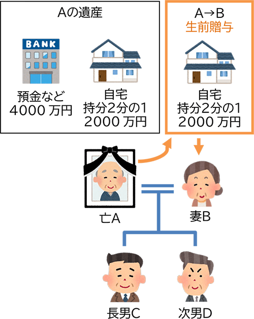 相続財産8000万円×相続分1/2=4000万円(生前贈与の自宅2000万円を含む)
