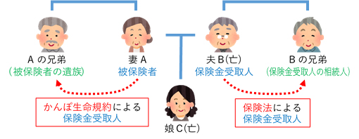 Aは生前にかんぽ生命と保険契約を結んでいたが、Aの死亡保険金受取人の名義が先に亡くなっている夫(B)であり、娘(C)も既に亡くなっている
